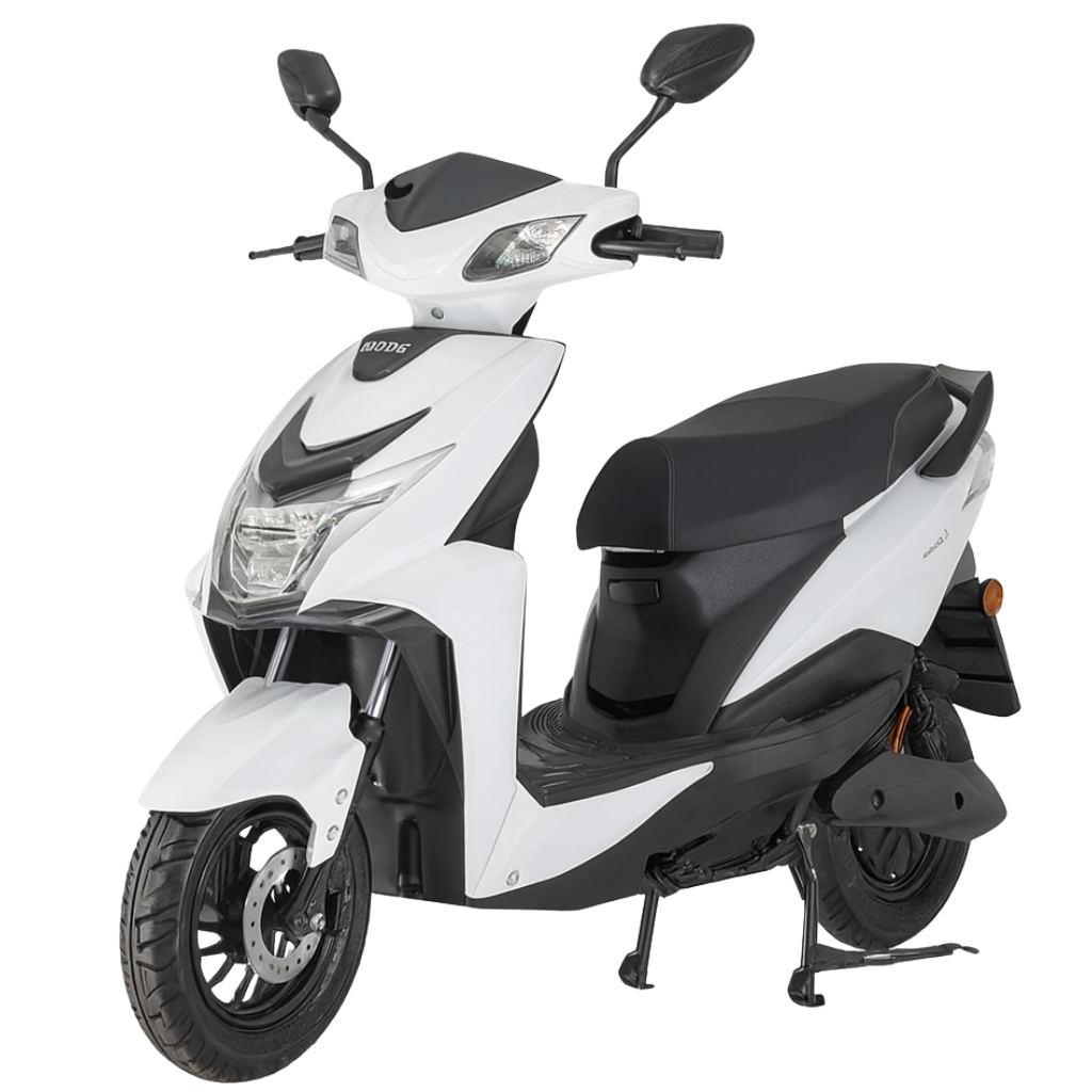 This electric scooter features a modern, aerodynamic design with a sleek white body and a comfortable, ergonomic seating position. Built for daily commuting, it offers silent performance, low maintenance, and eco-friendly mobility.